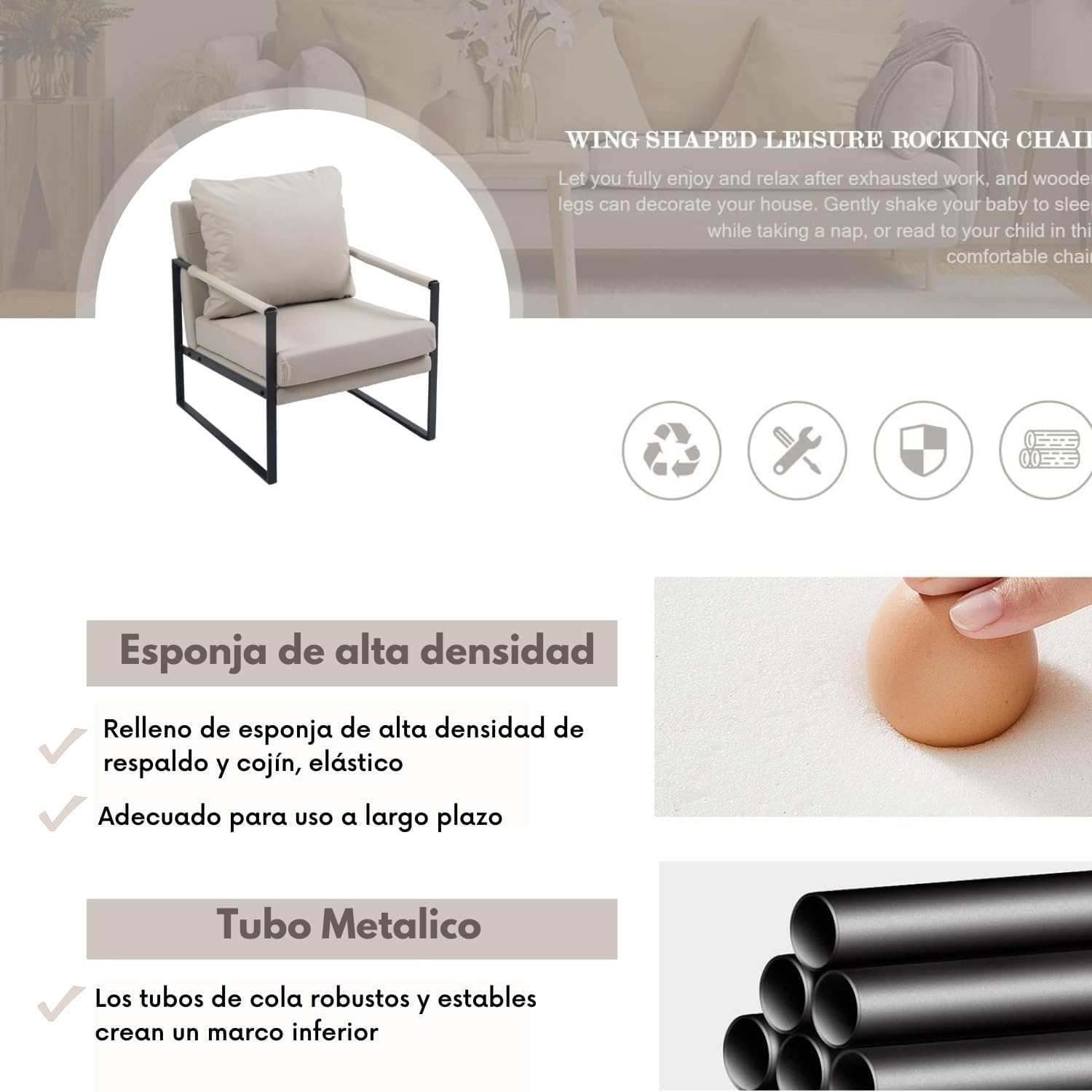 - Construida con materiales de primera calidad, la silla combina una estructura de metal resistente con cojines de tela suave al tacto, lo que garantiza tanto comodidad como durabilidad a largo plazo.