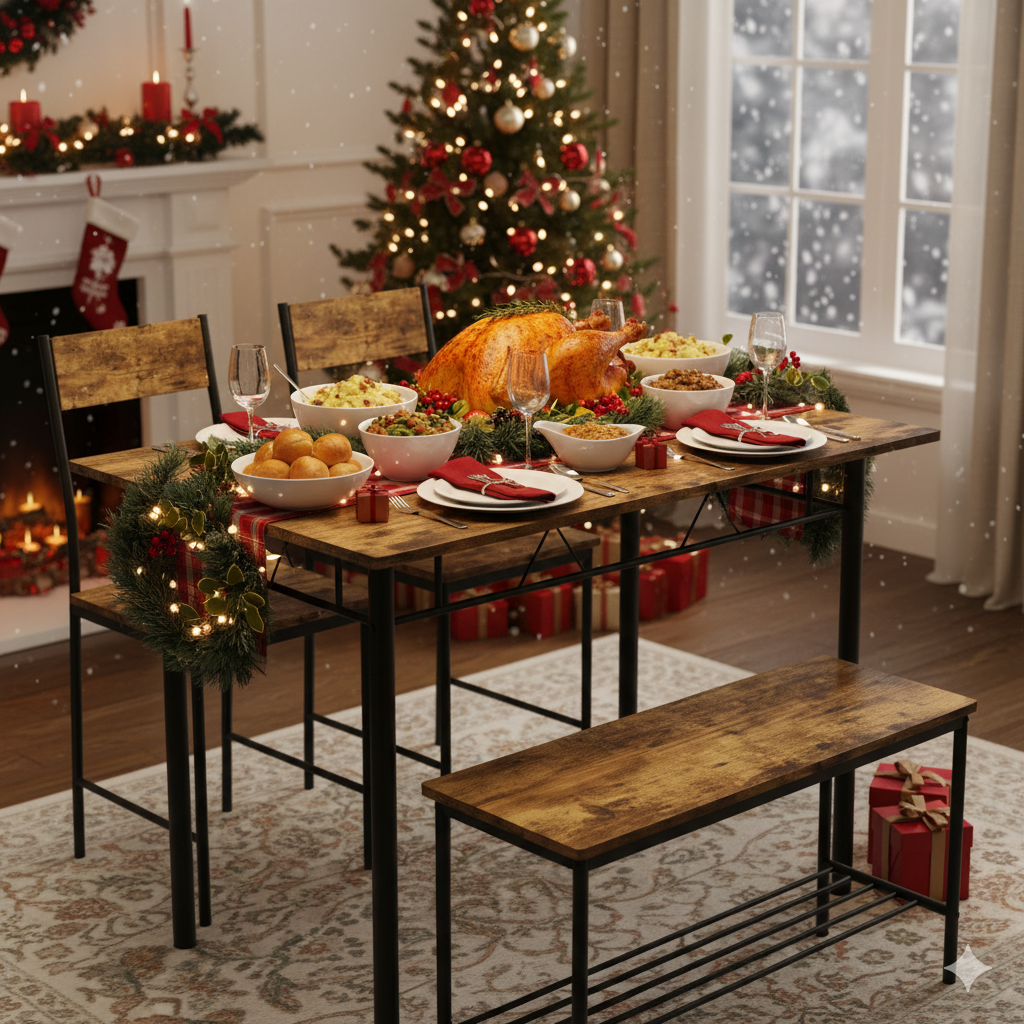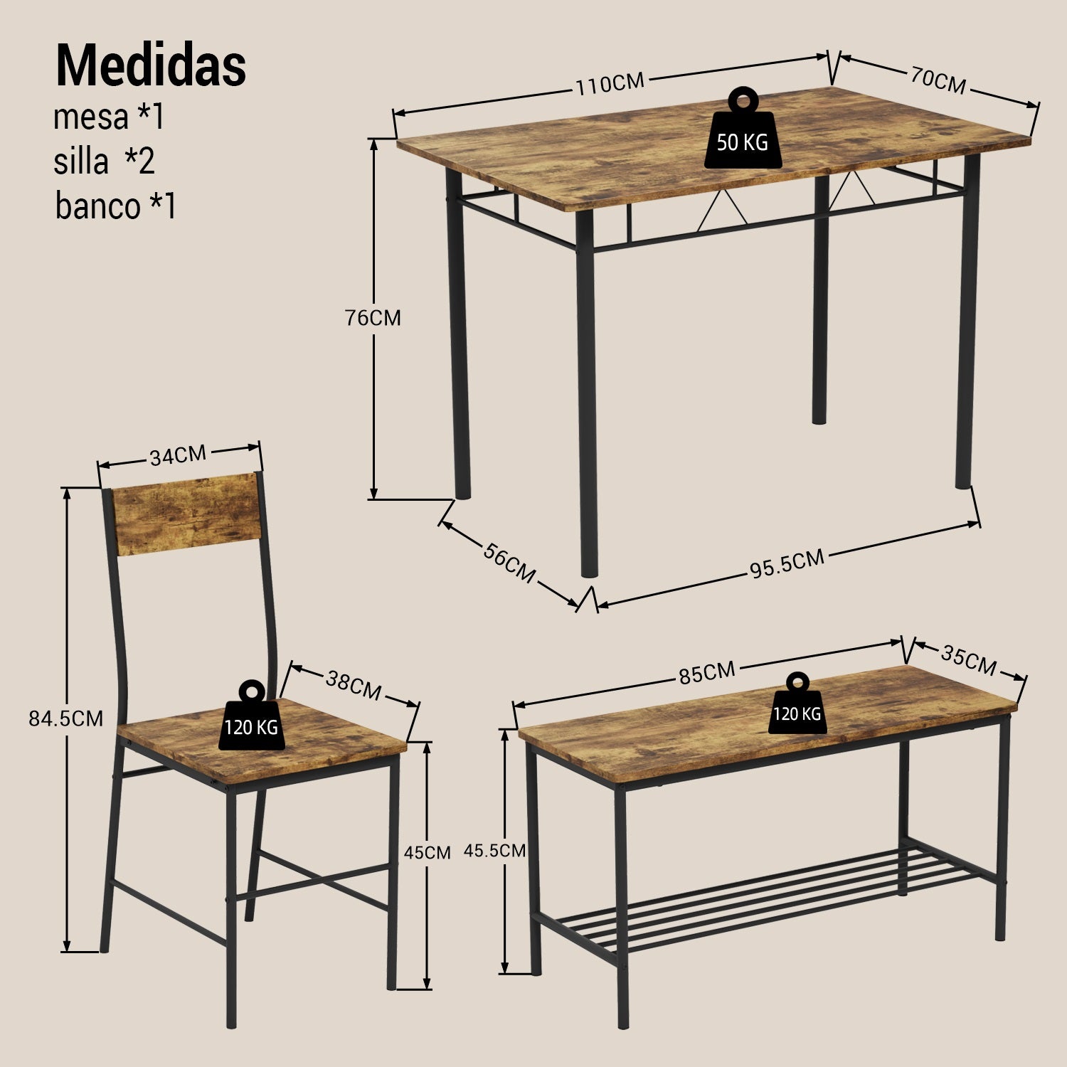Juego de Comedor 4 Piezas — Mesa + 2 Sillas + Banco