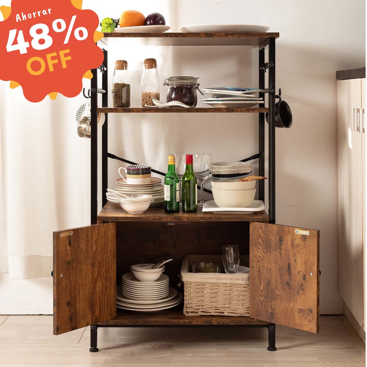 - ☕【Resistente y Duradero】- Hecho de madera MDF de alto grado y marco de metal premium, el estante de la panadería de la cocina cuenta con una durabilidad increíble, así como una robustez duradera. Con el soporte adicional de las varillas de metal, cada estante inferior soporta hasta 15-20 KGS. La sólida capacidad de carga de hasta 60 kg.