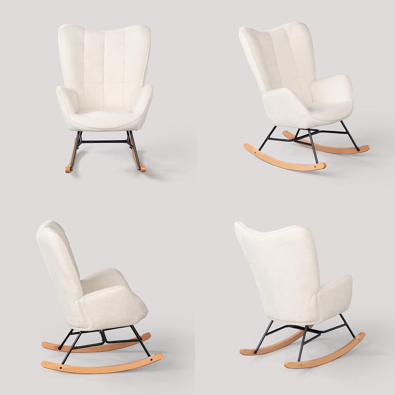 - 【Sillón acolchado simple y moderno】: esta mecedora es adecuada para la sala de estar, el dormitorio, la guardería, el porche, las oficinas, las áreas de recepción y especialmente los espacios pequeños.Tanto adultos como niños pueden disfrutar de la diversión y el tiempo libre de la mecedora. El moderno color caramelo y la encantadora apariencia cálida ayudan a agregar un estilo único a su hogar.