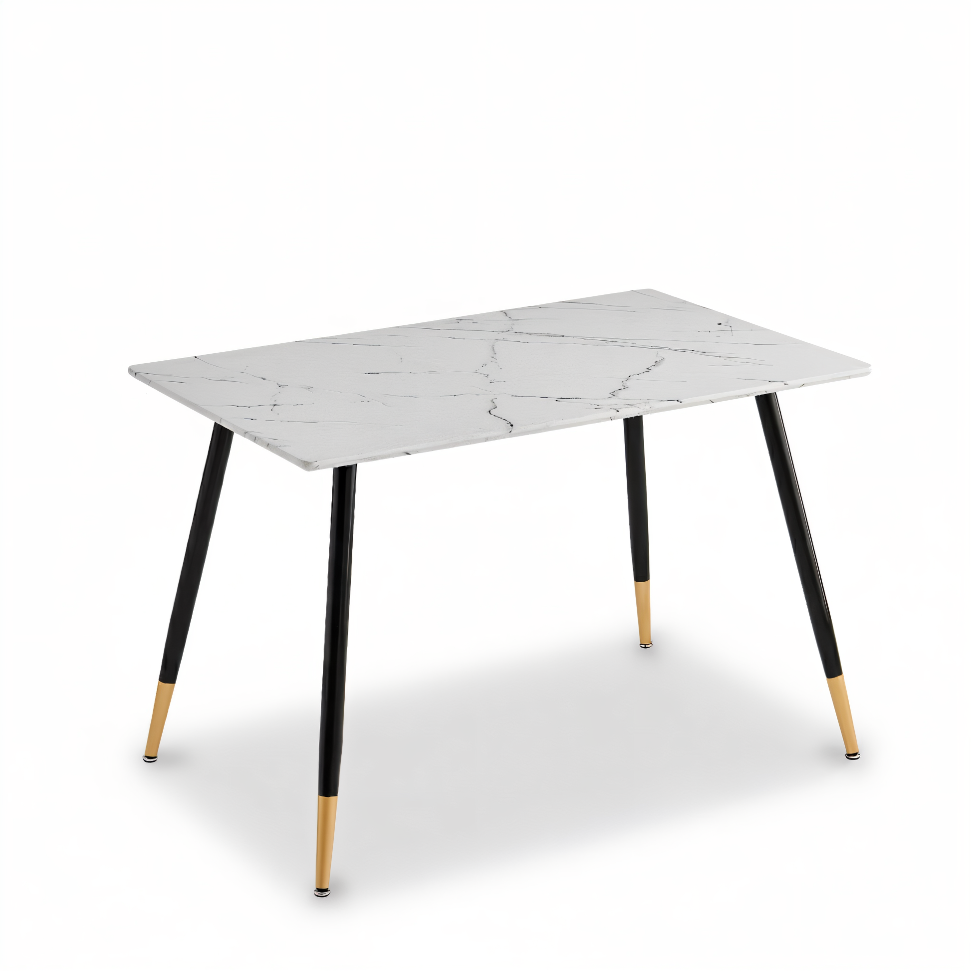 - 【Seguridad & Protección del medio ambiente】 El inofensivo tablero de madera de melamina reciclada garantiza la seguridad del uso de las personas.Las patas de la mesa de aleación de oro negro y la almohadilla ajustable para los pies en la parte inferior mejoran en gran medida el soporte de la mesa y son silenciosas.Efecto, protege el piso cuando Moviente