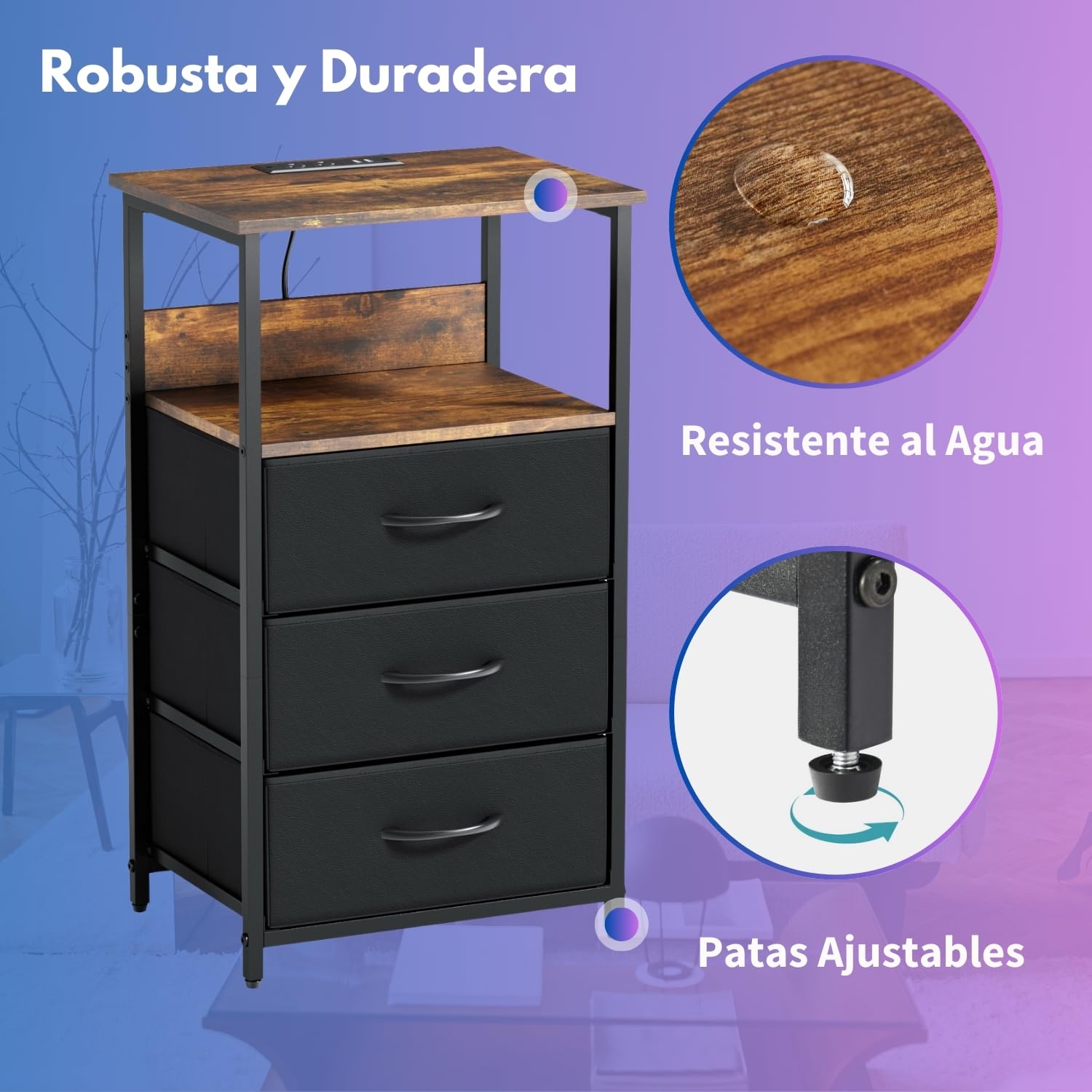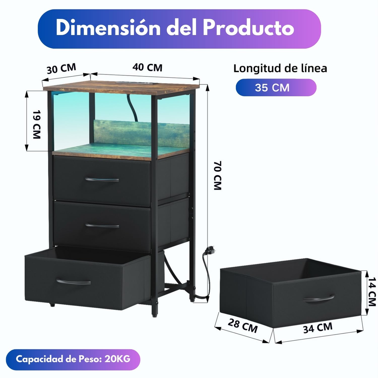 - ✅ 【Suficiente espacio de almacenamiento】 La mesita de noche tiene 3 cajones deslizantes, estante superior y 1 estante inferior, que es suficiente para que pueda colocar sus fotos, lámpara, libros, despertador, etcétera. El estante superior está diseñado para un almacenamiento sencillo, colocando gafas, artículos pequeños o su teléfono celular que se está cargando. El tablero de esta mesita de noche puede soportar hasta 20 kg y los cajones pueden contener hasta 10 kg.