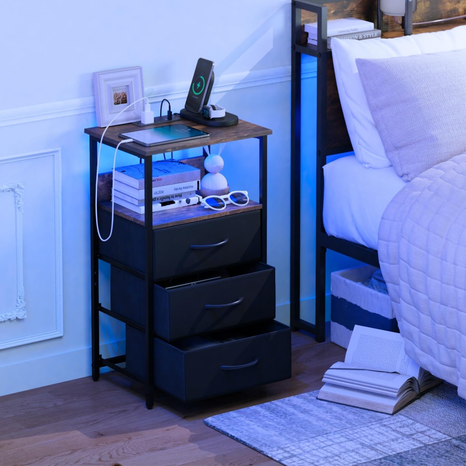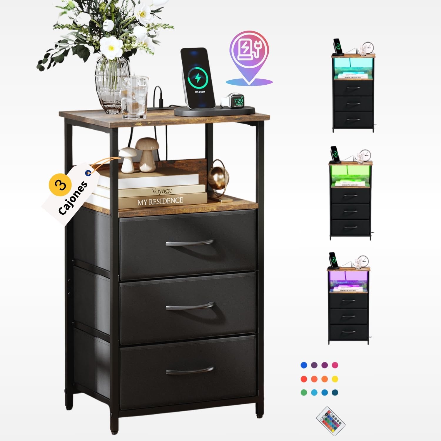 Mesitas de Noche con Luces LED con 3 Cajones Marrón y Negro 1PC