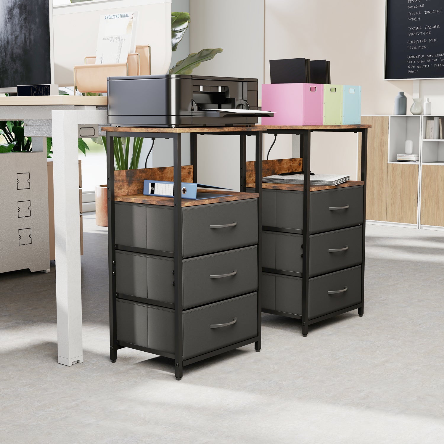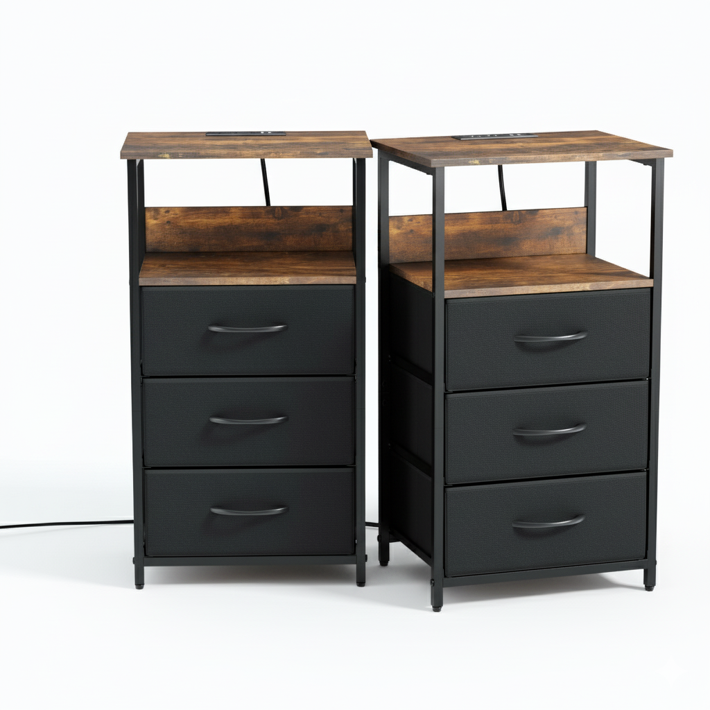 Mesitas de Noche con Luces LED con 3 Cajones Marrón y Negro 2PCS