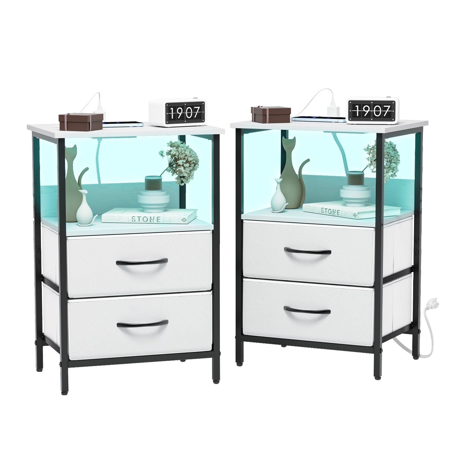 Mesitas de Noche con Luces LED y 2 Puertos USB Blanco 2PCS