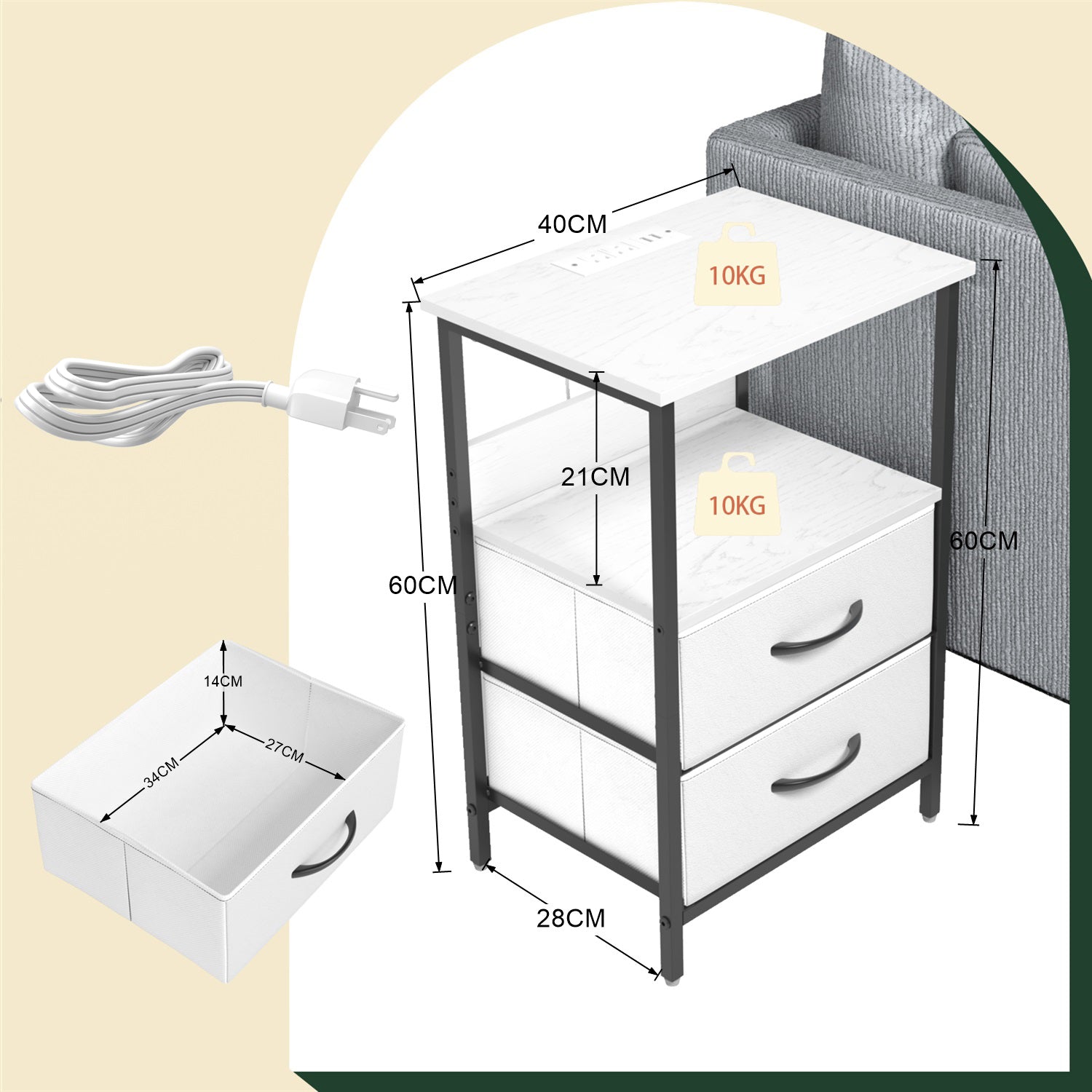 - 🔋 【Mesita de noche con estación de carga】A diferencia de otras mesitas de noche ordinarias, esta mesita de noche viene con 2 enchufes estándar y 2 puertos USB que le permiten cargar su teléfono, computadora portátil y otros dispositivos al mismo tiempo. Un cable de alimentación de 150 cm de largo le permite colocar su mesa auxiliar en la mayoría de los lugares.