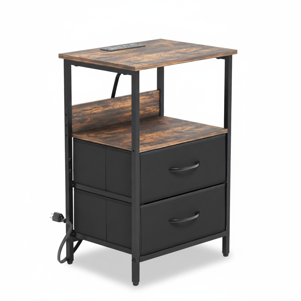 【Mesita de noche con estación de carga】A diferencia de otras mesitas de noche ordinarias, esta mesita de noche viene con 2 enchufes estándar y 2 puertos USB que le permiten cargar su teléfono, computadora portátil y otros dispositivos al mismo tiempo. Un cable de alimentación de 150 cm de largo le permite colocar su mesa auxiliar en la mayoría de los lugares.