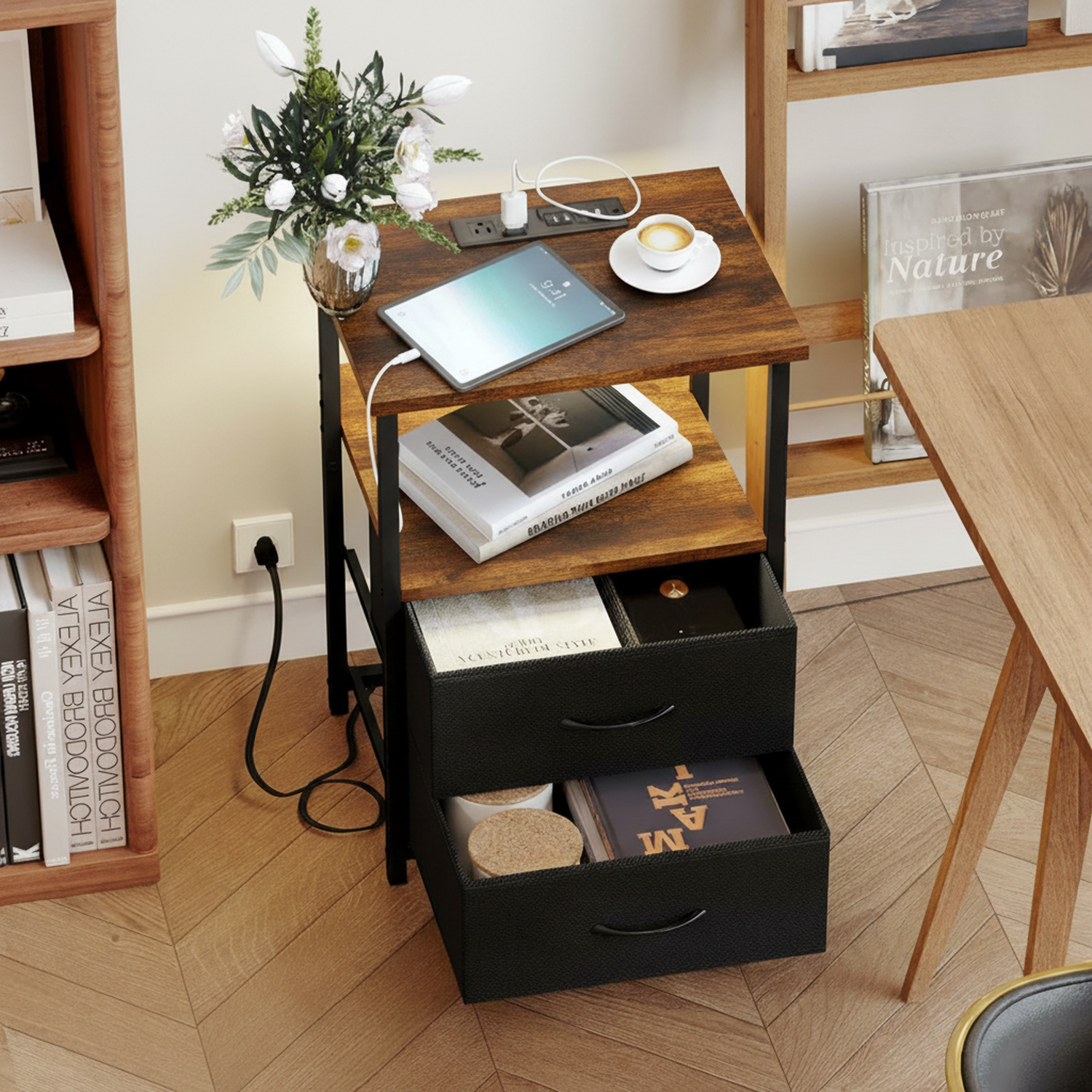 【Suficiente espacio de almacenamiento】 La mesita de noche tiene 2 cajones, estante superior y 1 estante inferior, que es suficiente para que pueda colocar sus fotos, lámpara, libros, despertador, etcétera. El estante superior está diseñado para un almacenamiento sencillo, colocando gafas, artículos pequeños o su teléfono celular que se está cargando. El tablero de esta mesita de noche puede soportar hasta 20 kg y los cajones pueden contener hasta 10 kg.