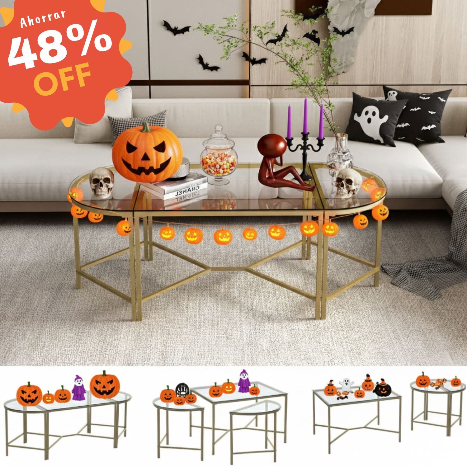 Set De 3 Mesas De Centro Mesitas Auxiliar Apilables Cristal