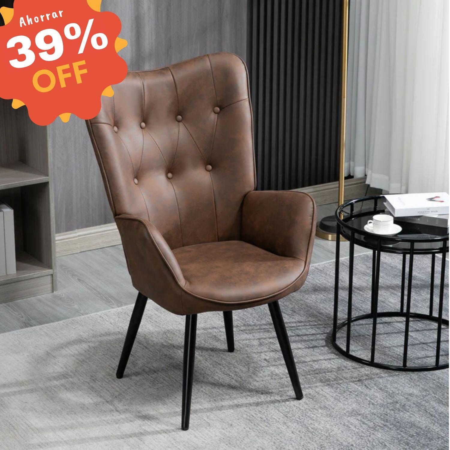 Sillón de Piel Sintética Tapizado Sillón de Cuero Individuales Marron